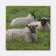Vista de 3 ovelhas a arrefecer no seu campo nas Ilhas Orkney, Escócia.