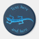 Ícone de lagarto azul com formas tribais no corpo. Dois campos de texto personalizados em círculo.