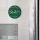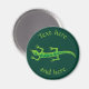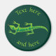 Ícone verde de lagarto com formas tribais no corpo. Dois campos de texto personalizados em círculo.