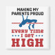 Esta legal faixa e design de campo é perfeita para homens ou mulheres que competem em eventos de salto alto em encontros de pista. Design de atleta esportivo engraçado diz: "Fazer que meus pais se orgulhem toda vez que eu fico chapado."