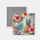 "Tropical Bloom" Um padrão tropical vivo e colorido, com ananás maduros, aninhados entre as folhas de palma de lágrimas e as vibrantes flores de hibisco em tons de vermelho, rosa e laranja. Este design capta a essência de um paraíso tropical, misturando a flora exótica com uma nova vibração de Verão.