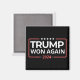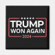 O design tem um tema ousado e patriótico, com vermelho, branco e azul como as cores primárias. Ele apresenta uma tipografia forte e impactante, possivelmente usando uma fonte sans-serif para clareza e sentido de força. O texto centralizado exibe com destaque "Trump Won Again 2024" com gradientes sutis para adicionar profundidade. O fundo inclui elementos americanos icônicos como estrelas ou a bandeira americana, com uma águia subtilmente trabalhada na design para enfatizar o patriotismo. Esta design sente-se confiante e assertiva, perfeita para criar uma declaração impressionante e memorável.