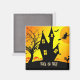 Noite de Halloween e é Trick ou Treat. Design assustador com uma casa assombrada, morcegos, abóboras e, claro, um gato preto. Cuidado!