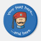 Chefe do desenho animado grego Evzone (tsolias), vestindo fez vermelho. Cor de fundo personalizada. Dois campos de texto personalizados em círculo.