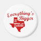 Tudo é maior no Texas, a estrela solitária! É engraçado porque é verdade. Este ímã contém um gráfico vermelho e texto na forma do estado do Texas.