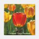 Uma tulipa laranja entre muitas tulipas amarelas no Festival de Tulipas de Ottawa.