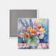 Imã Tulipas bonito de aquarelas em íman de vaso de vid