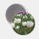 Tulipas brancas num campo de tulipas com tulipas roxas ao fundo. Em uma fazenda de tulipas em Oregon. Foto: abril de 2015.