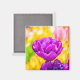 Tulipas Encantando 15. Tulipas coloridas num leito de flores. Praticamente todas as cores do arco-íris estão presentes. Bela e positiva cena floral. Fotografia macro.