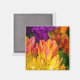 Tulipas Encantando 16. Tulipas coloridas num leito de flores. Praticamente todas as cores do arco-íris estão presentes. Bela e positiva cena floral. Fotografia macro.