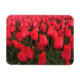 Tulipas cor-de-rosa-coral, cor-de-rosa, cor-de-rosa-rosa, a frio e brilhante, num campo na Fazenda Tulipas de Wooden Shoe em Woodburn, Oregon. Foto: abril de 2019.