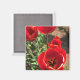 Uma dentro de vista única de uma tulipa vermelha num campo na Fazenda Tulipa de Wooden Shoe em Woodburn, Oregon. Foto: abril de 2018.