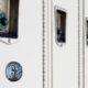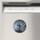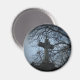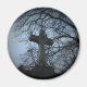 Uma bela e modesta cena numa cemitério que apresenta uma lápide de cruz abrigada por galhos de árvores num ímã.