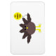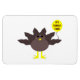This awesome magnet features a funny cartoon of a turkey with big black eyes, a small yellow beak and tail feathers sticking up. The feet are facing in opposite directions making the turkey look clumsy. The turkey is holding a yellow balloon with a message inside that says “it’s turkey time”. This is a fun thanksgiving party design.