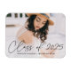 Celebre a formatura com nosso ímã de graduação com foto estiloso. O ímã de graduação exibe a foto do formando com "Turma de 2023" em um letreiro moderno preto com caligrafia sobreposta com um gradiente branco opcional. Personalize o ímã de graduação moderno adicionando o nome do formando e o nome da escola. O design é perfeito para formandos do ensino médio e universitários.