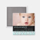 Apresente a sua doce menina com este bonito ímã fotográfico num elegante design de azul-turquesa-claro e branco-damasco. É facilmente personalizado com a sua fotografia do bebê, o seu nome e os pormenores do seu nascimento e faz um maravilhoso anúncio para partilhar com os seus entes queridos.