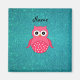 Coruja rosa-branca com bolinhas brancas e brilho de turquesa/aqua personalizado com os seus nomes presentes ou presentes monográficos ou com as suas iniciais