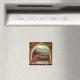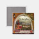 Magneta de arte com pintura inspirada na arte italiana, que mostra uma garrafa de vinho com vidro na peneira de uma janela romana com um olhar sobre uma paisagem de fantasia toscana. (Eu fiz os textos, você pode apagá-los ou personalizá-los). Bonito como presente para Dia de as mães, aniversário ou outra celebração.