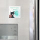 A pintura do número quatro em verde com fitas de espiral cor-de-rosa, com uma foto do nosso tuxedo gato vestindo um vestido cor-de-rosa e branco, com Feliz aniversário Jeremy, é impressa em ímãs personalizados. O texto pode ser facilmente personalizado no formulário modelo.