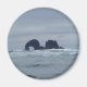 Rochas gêmeas vistas num dia nublado na costa. Rockaway Beach, Oregon.