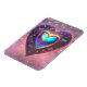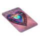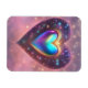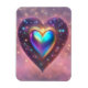 Um coração colorido com luzes cintilantes num céu estrelado cósmico.