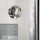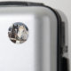 A magnet with an illustration of two horses on a snowy winter ranch with a full moon in back of them standing behind an old rustic fence.