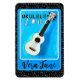 Um ukulele é enquadrado em maravilhosas tonalidades azuis. Periwinkle, aqua e turquesa fazem parte do esquema de cores. Sobre o instrumento estão as palavras: UKULELE Love. Abaixo da trabalho de arte, há uma modelo para o seu nome ou outra redação da sua escolha. Remova o texto padrão e deixe o vazio modelo, se preferir não ter texto abaixo do ukulele. O fundo externo consiste de notas musicais em um tema preto e branco. Os fãs da Yuke vão adorar este ímã único e divertido, que seria um presente de Dia de os namorados excelente.