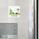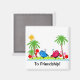 Divirta-se com este belo ímã mostrando dois amigos animados aproveitando um martini ao ar livre debaixo das palmeiras.