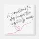 Este é um poderoso lembrete do impacto transformador que a positividade pode ter em nossas vidas ao abraçar a prática de dar e receber elogios diariamente, cultivamos uma mentalidade de apreço e gratidão que elevam a nós mesmos e aos outros ao nosso redor. Então, vamos espalhar a bondade um complemento de cada vez e ver o dia brilhar e banir a negatividade de nossos corações!