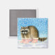 Imã Um guaxinim bonito em botas de neve rosa