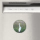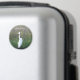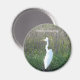 Íman redondo com uma foto de uma grua branca e uma imagem de timelessimaging