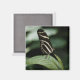 Foto de uma borboleta Zebra Longwing balanceada em uma folha de plantas enquanto desfruta do néctar doce que tinha coletado de uma flor próxima.