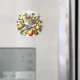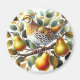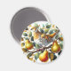 Bonito papagaio de ouro num ímã de pera com folhagem verde-salva bonito e peras ouros.
