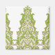 Este design retrata um padrão floral intrincado e ornamentado. A design apresenta arranjos simétricos de elementos semelhantes à videira com folhas e flores delicadas. As cores predominantes são tons de verde, com pistas de rosa e branco, criando uma composição harmoniosa e elegante. O padrão é bastante detalhado, com linhagem intrincada e florescimento decorativo por toda parte. Parece ser um design clássico e tradicional, que lembra o papel de parede ou os padrões têxteis antigos.