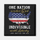 Bandeira americana envergonhada em fundo negro com palavras de Penhor de Lealdade, "Uma Nação, Sob Deus, Com Liberdade e Justiça para Todos"