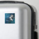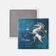 Uma bela ilustração de unicórnio no estilo heráldico vintage, colocada sobre o fundo do céu celeste. Personalizar com o nome ou outro texto na fonte do script branco.
