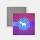 unicórnio arco-íris cúmulo com círculo escamoteado de bolinhas azul e branca com faixa azul e roxa sobre fundo rosado e roxo brilhante