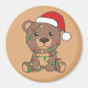 O urso de Natal com luzes de fadas. Animais engraçados com presentes e neve nas férias. Uma doce saudação de Natal. Ursos são animais bonitos e perfeitos para o Natal.