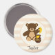 Imã Urso de pelúcia castanho-branco com mel amarelo