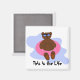 Um urso legal num tubo flutuante cor-de-rosa vestindo alguns tons azuis legal. Prontos para a praia. 'Esta é a vida'