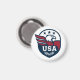 Um crachá ousado, estilo atlético, com uma águia-careca dinamizada com asa estendida, três estrelas e uma coroa de louros acima da varsidade "EUA". Formas de vetor limpas e uma paleta vermelha forte e marinho dão a ela uma sensação pró-equipe — perfeita para T-shirts, capuzes, chapéus, adesivos, canecas e posters para o dia do jogo, desfiles e eventos patrióticos.