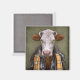 Esta design apresenta um retrato de uma vaca em uma jaqueta de couro e um cachecol.