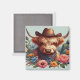 Imã Vaca do planalto Vestindo chapéu de vaqueiro