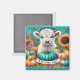 Uma ilustração encantadora de uma vaca branca rodeada por abóboras coloridas, girassóis e folhas de outono, incorporando o calor e o espírito da época de outono com um toque caprichoso.