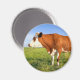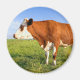 Vaca frísia forte. Vista lateral de uma vaca frísio branca, castanha e saudável, parada num prado na Frísia. Uma bela grama verde pronta para comer e um belo céu azul.