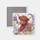 Imã Vaca Highland com Flores e Borboletas
