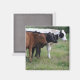 Quatro bovinos de carne ficam em fileira como se estivessem em exposição, num campo de fazenda rural. Um holstein, dois angus pretos, e um angus vermelho. Foto colorida.