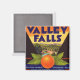 Mostra uma peça de arte antiga num ímã quadrado de 2 polegadas. Este ímã é adornado com a etiqueta laranja Marca Valley Falls com uma grande imagem de uma laranja e folhas em frente a uma paisagem de laranja. O design foi ampliado para preencher toda a área do impressão para estilizar o design de etiqueta. Se quiser ver o rótulo inteiro, clique em "Personalizar!" e use os controles para dimensionar a arte de acordo com o seu gosto. Um pouco de história da Fruta Crate Label De 1880 a 1940, os Estados Unidos ocidentais experimentaram décadas de intensa competição entre os produtores de frutas para criar as etiquetas mais coloridas, artísticas e de caixas de papel para a captura de olhos usadas para identificar suas grades de fruta cítrica. Os imigrantes alemães combinaram suas habilidades de impressão e ilustração para criar a arte comercial de fruta em qualquer lugar do mundo. Os alemães americanos, há décadas, usavam litografia para criar rótulos para garrafas de vinho. Os produtores de laranja e carregadores da Califórnia adaptaram o conceito de rótulo de vinho a um formato maior e as etiquetas de caixa de fruta eram nasceres. Originalmente, o processo usado para criar as etiquetas era e é conhecido como litografia de pedra, onde a ilustração foi gravada diretamente num pedaço de calcário, processo que exigia talento e habilidade excelentes. As etiquetas das caixas de fruta da década de 1880 até à década de 1920 foram produzidas principalmente por este processo litográfico de pedra. Após este período, foram utilizadas técnicas de impressão mais modernas, até às décadas de 1940 e 1950, quando as caixas de madeira e os rótulos foram substituídos, na sua maioria, por caixas de cartão pré-impressas. Hoje, as etiquetas das caixas de fruta são altamente coletáveis e reconhecidas como um excelente exemplo de arte comercial e ilustração de uma era passada.