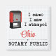 Eu Vim, Vi, Esmurrei. Anuncie seu negócio notarial de Ohio com um toque de humor. O botão do orgulho do Estado faz um presente ponderado para qualquer notário profissional ou agente assinante de empréstimos que forneça serviços legais ao público. Este design de selo notário vermelho é apresentado sobre um fundo de papel de gráfico azul.