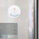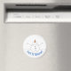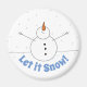 Este ímã apresenta um feliz boneco de neve com um nariz de cenoura laranja e braços estendidos olhando para cima para a queda de neve com texto azul curvo que diz "Deixe-o nevar!"